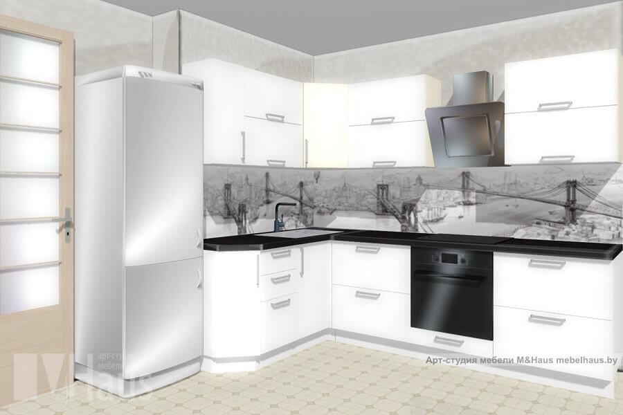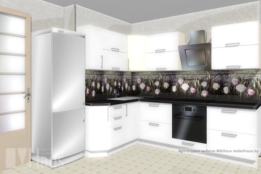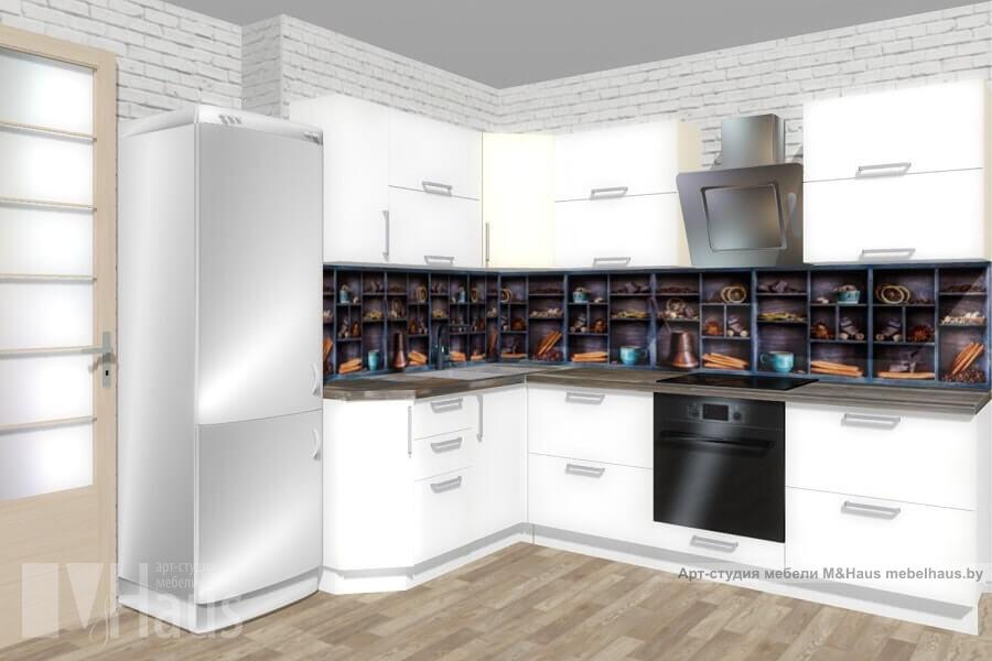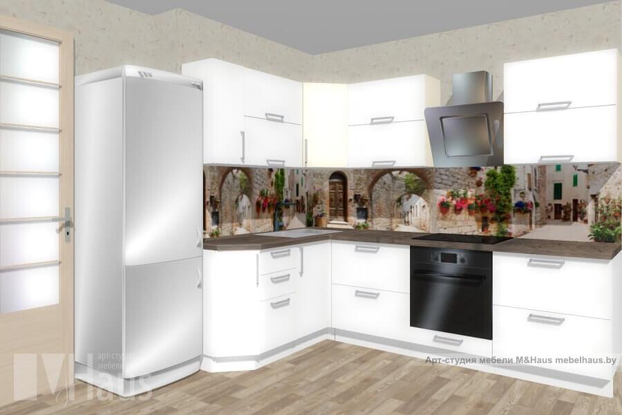 Белая угловая кухня «Агния» со скинали купить в Минске недорого
